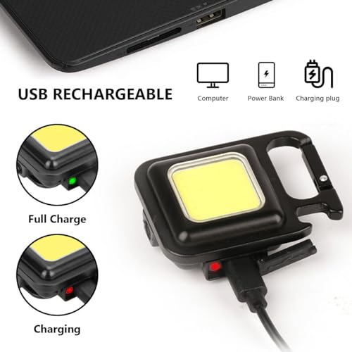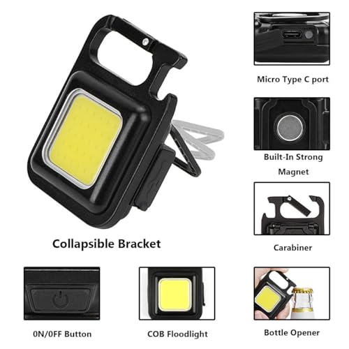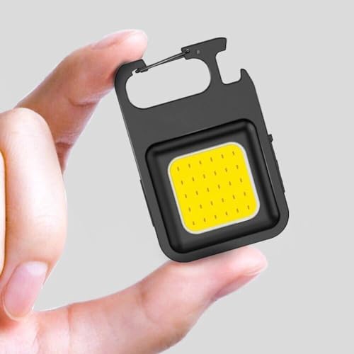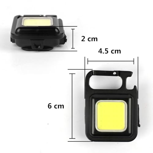- 【Super Bright】The keychain flashlight uses a high power COB LED which gives out 1000 lumens bright flood light. Great used as small work light and emergency light.