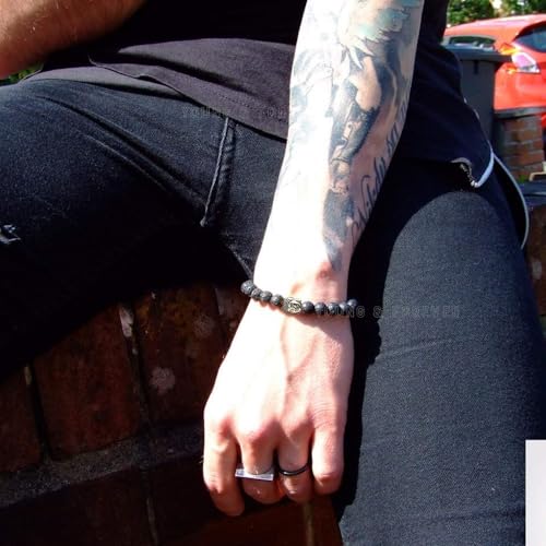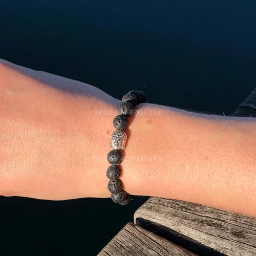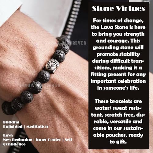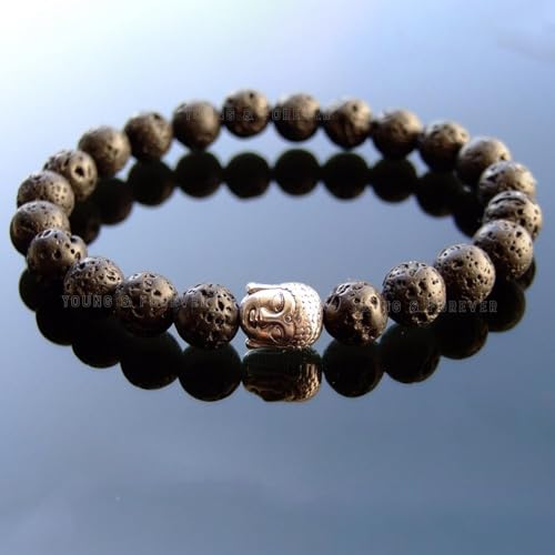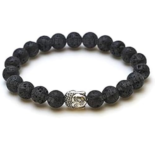 Young & Forever - Young & Forever Gift Handmade Semi Precious Stone Bracelet for Men and Women(Lava Rock, Black)