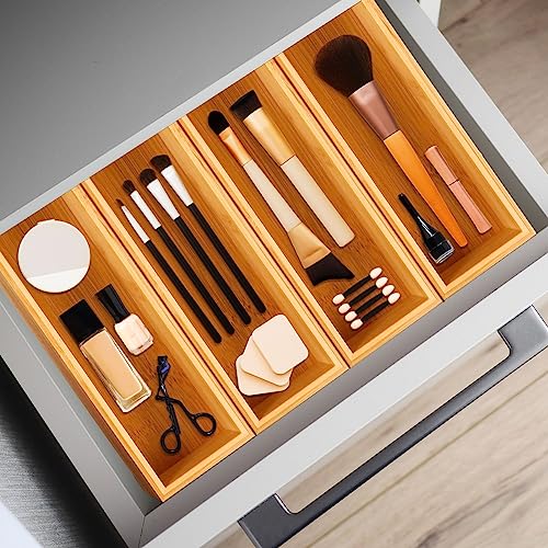 - High quality bamboo materials: Bamboo has a natural, warm appearance that adds a touch of elegance to any space; A bamboo drawer organizer box can enhance the visual appeal of your drawer while keeping it tidy and organized