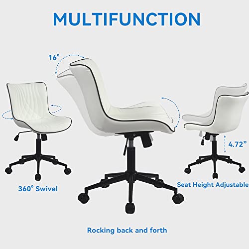 YOUNIKE - YOUNIKE Office Chair, Armless Desk Chair with Wheels, Home Office Computer Task Chairs, Modern Faux Leather Upholstered Vanity Chair, Adjustable Swivel Rocking Office Chair with Back, White