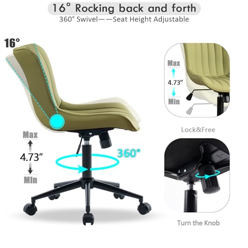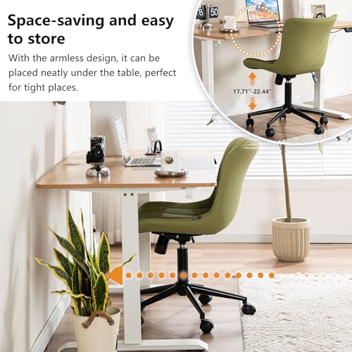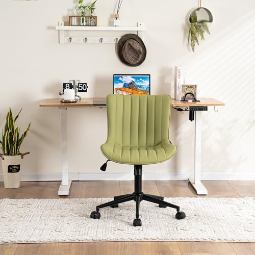 YOUNIKE - YOUNIKE Office Chair Swivel Desk Chair with Wheels Upholstered Faux Leather Height Adjustable Computer Task Chair Modern Rolling Armless Ergonomic Backrest, Light Avocado Green, Loads 300 lbs