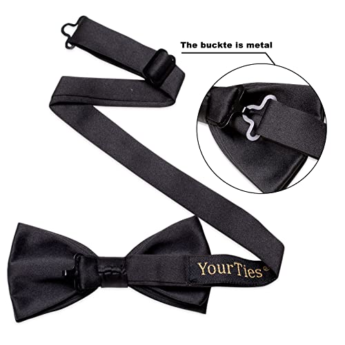 YourTies - Pre-Tied Bow Tie Satin Solid Bowtie Adjustable Tuxedo Bowties for Men and Boys with Gift Box