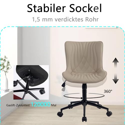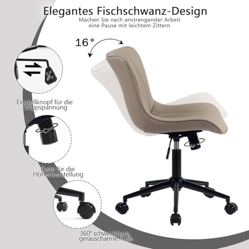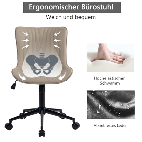 YOUTASTE - YOUTASTE Ergonomic Office Chair, Height Adjustable Desk Chair, PU Leather, Swivel Chair with Tilt Function, Computer Chair with Wheels for Study, Bedroom, Khaki