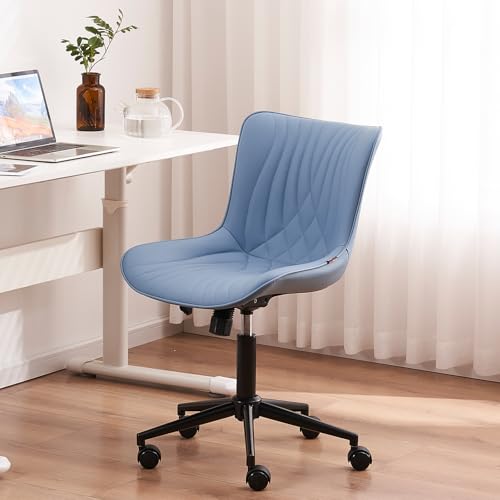 YOUTASTE - YOUTASTE Ergonomic Office Desk Chair Faux Leather with Wheels Adjustable Home Vanity Chairs Modern Padded Swivel Lounge Chairs Rocking Computer Task Chair with Back Blue