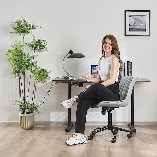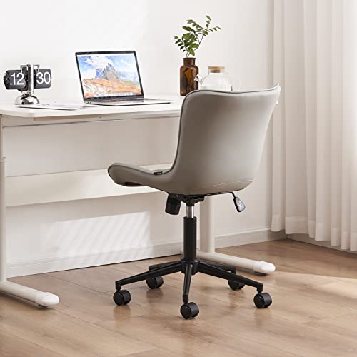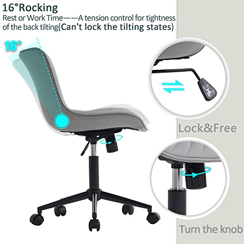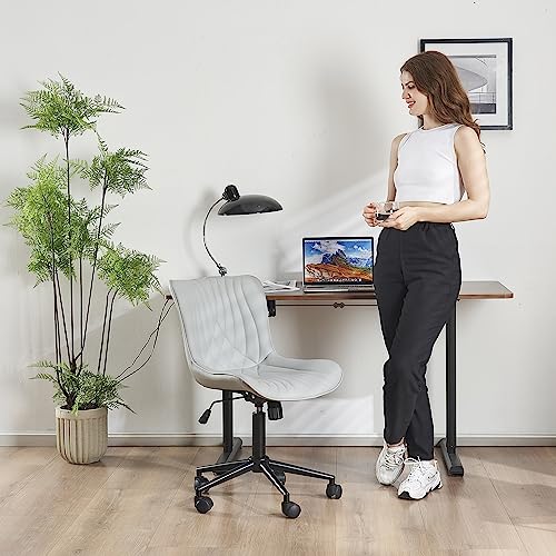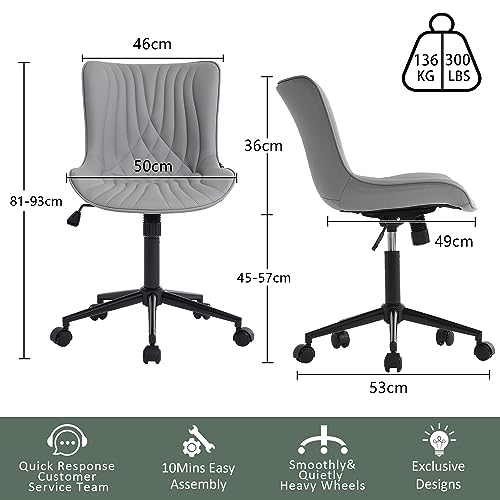 YOUTASTE - كرسي مكتب مريح من الجلد الصناعي مع عجلات قابلة للتعديل يوتاست استرخاء دوار مبطن حديث مزود بدوران مناسب للكمبيوتر ظهر بلون رمادي معدن