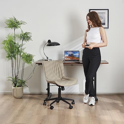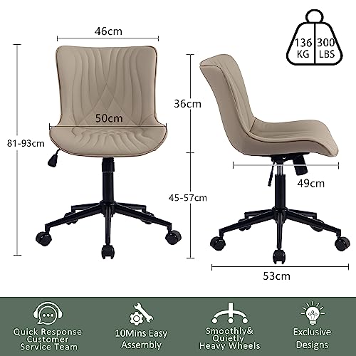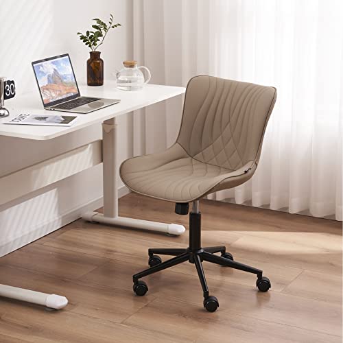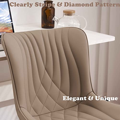 YOUTASTE - YOUTASTE Ergonomic Office Desk Chair Faux Leather with Wheels Adjustable Home Vanity Chairs Study Chair Modern Padded Swivel Computer Task Chair with Back Khaki