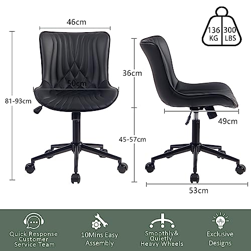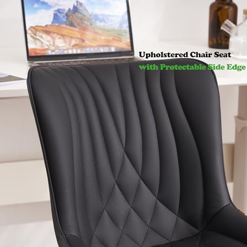 YOUTASTE - YOUTASTE Ergonomic Office Desk Chair with Wheels Leather Adjustable Home Vanity Chairs Modern Padded Swivel Lounge Chairs Rocking Computer Task Chair with Back Black