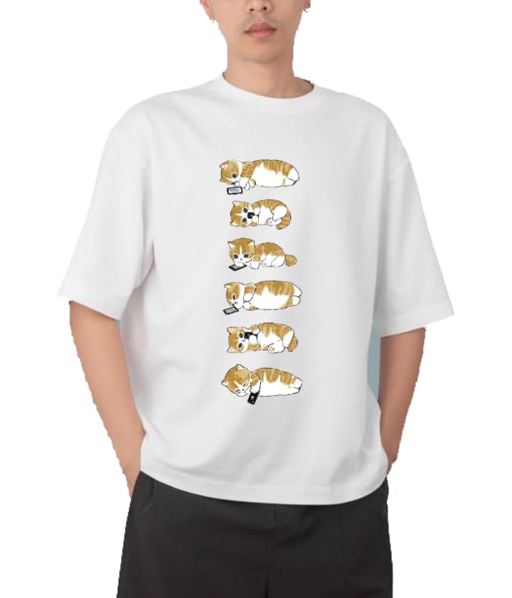 Generic - Youth black white oversize fit t-shirt kitty kitten kawaii cute cat 105