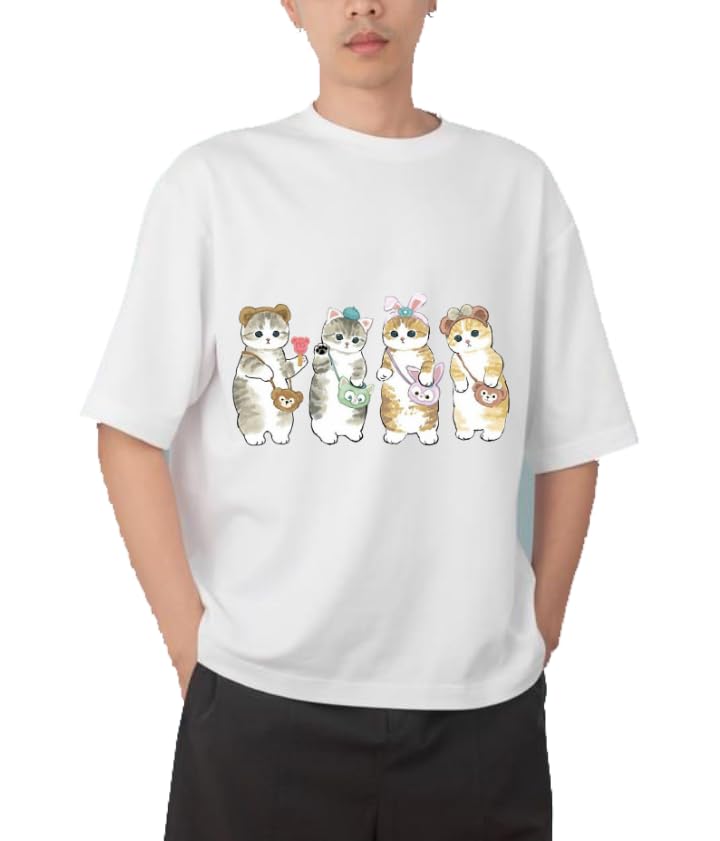 Generic - Youth black white oversize fit t-shirt kitty kitten kawaii cute cat 125