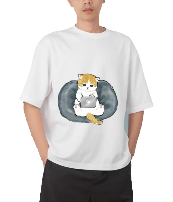 Generic - Youth black white oversize fit t-shirt kitty kitten kawaii cute cat 129
