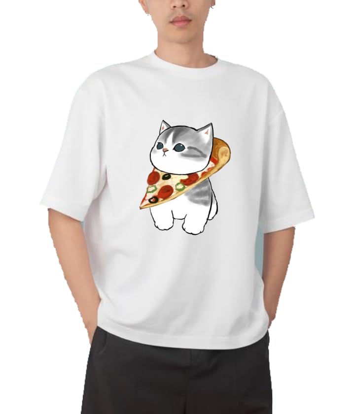 Generic - Youth black white oversize fit t-shirt kitty kitten kawaii cute cat 31