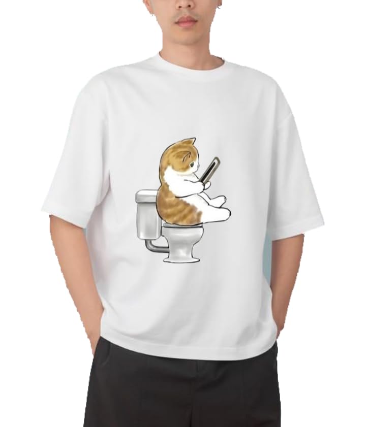 Generic - Youth black white oversize fit t-shirt kitty kitten kawaii cute cat 54