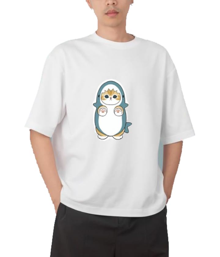 Generic - Youth black white oversize fit t-shirt kitty kitten kawaii cute cat 61