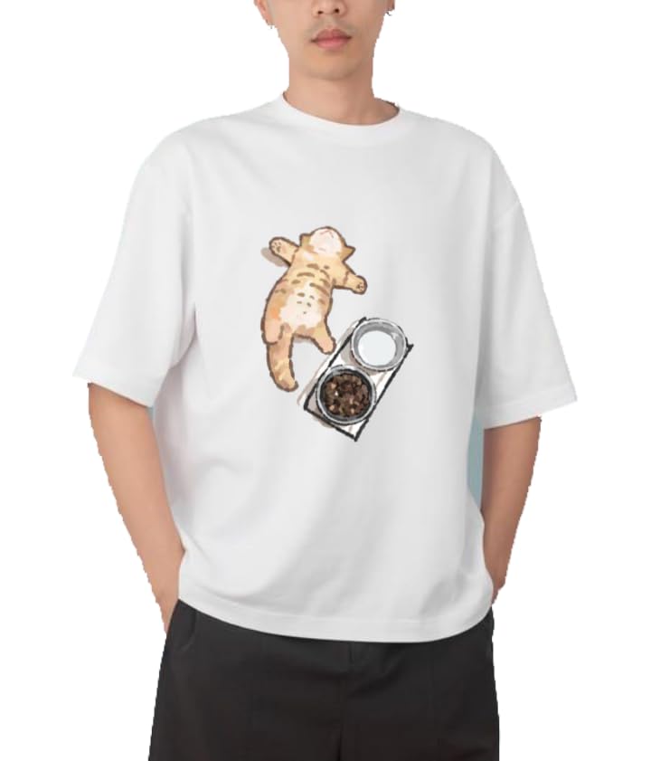 Generic - Youth black white oversize fit t-shirt kitty kitten kawaii cute cat 80