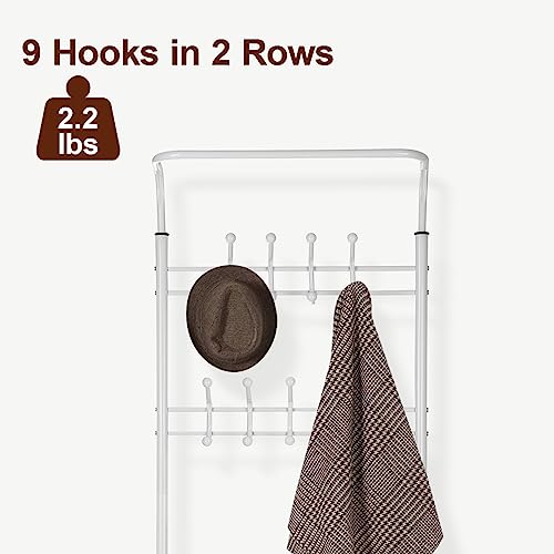 - [UNIQUE DESIGN]:Product size 185*30*65CM. This metal hall tree Garment rack with 9 hooks and can be removed as needed, each can load 2.2 lbs, all hooks have a rounded edges to prevent damaging your clothes.