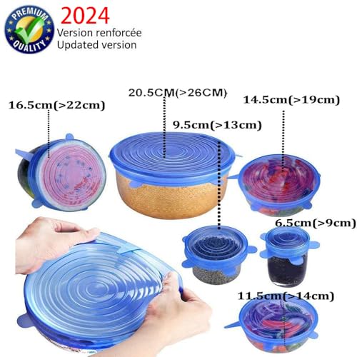 YOUYIKE - 6pcs Silicone Stretch Lids, Silicone Food Covers, BPA and Expandable to Fit Various Shape of Containers, Dishes, Bowls, Safe in Dishwasher, Microwave and Freezer