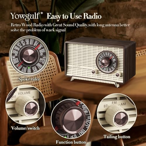 - Sleek Design: This YOWGULF vintage radio is made of wooden material with excellent texture, and a comfortable hand feeling, not easy to be damaged, and is durable for a long time. Retractable Copper Telescopic Antenna has a strong reception
