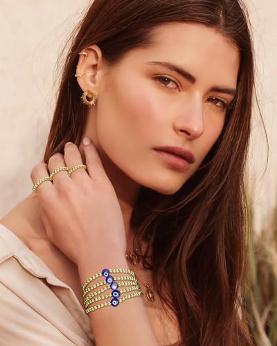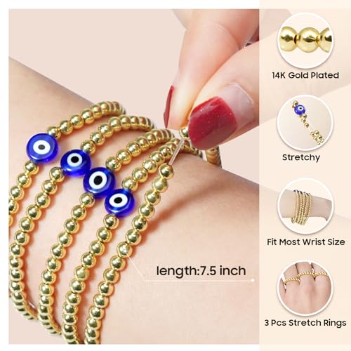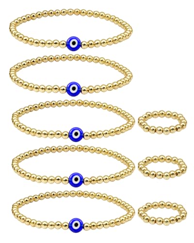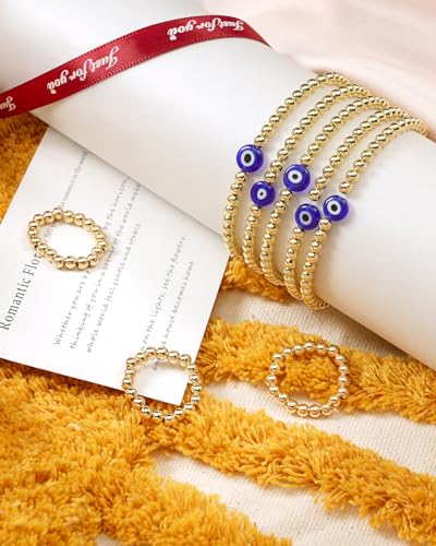 Yowivon - Yowivon Evil Eye Gold Beaded Bracelets for Women Stackable Bracelets with Rings Stretch Trendy 14K Gold Plated Tarnish Free Gold Jewelry Gifts