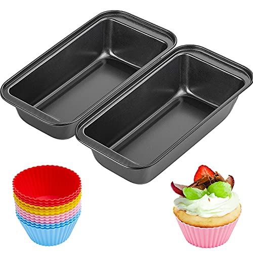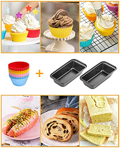 yoyoblue - Bread Baking Mould, Non-Stick Muffin Mould, Pack of 2 Loaf Tins, Non-Stick Bread Pans, 12 Reusable Silicone Bread Baking Moulds, Ideal for Baking Bread & Meat Roast, Muffins, Cupcakes & Those