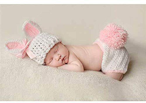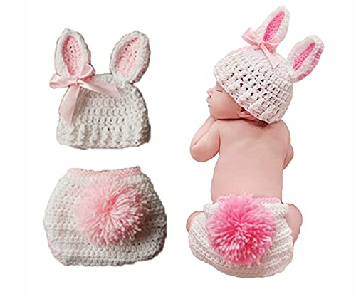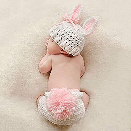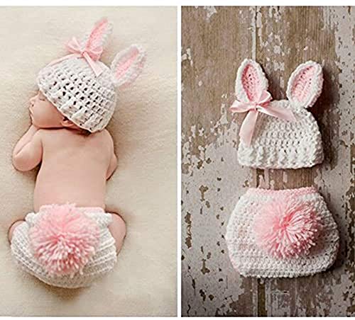 Yplun - مجموعة ملابس تصوير فوتوغرافي لحديثي الولادة بدلة اطفال منسوجة من الكروشيه مناسبة التصوير للاطفال الرضع عمر 0-6 اشهر بينك زهري صوف