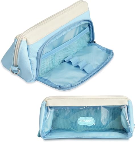 YPLUS - مقلمة بجيب شفاف BG230120 من واي بلس، أزرق
