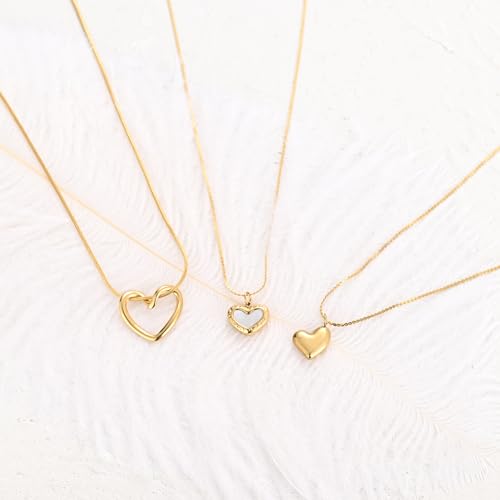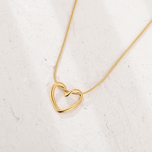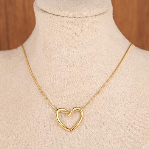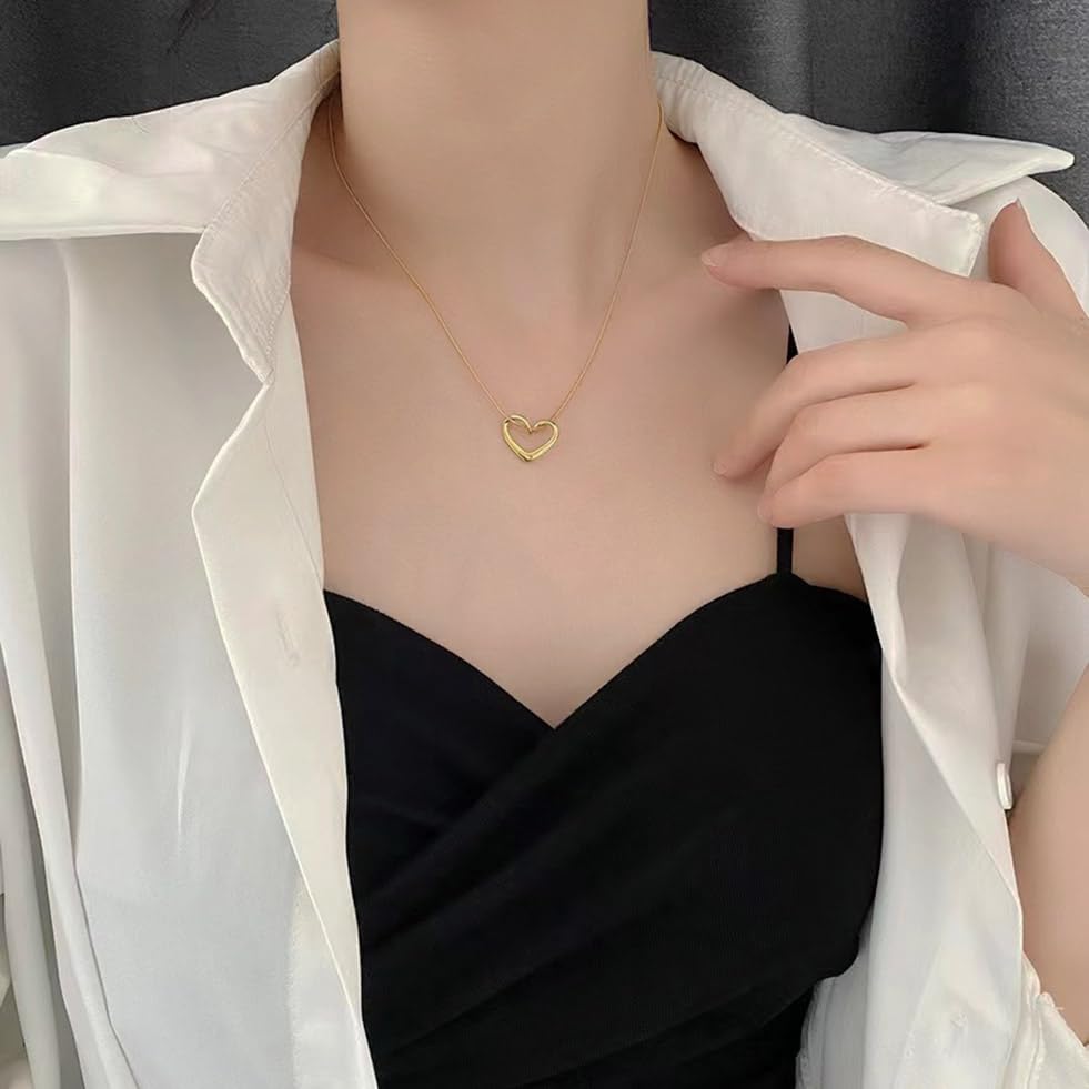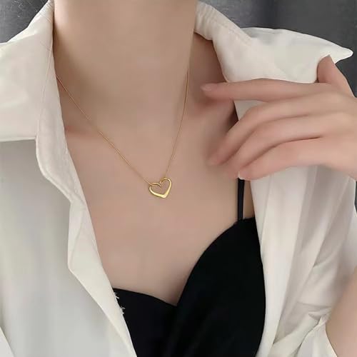 YREQUE - Heart Necklace for Women 14K Gold Plated Cute Heart Pendant Necklaces for Girls Dainty Heart Choker Jewelry Gifts (A-Gold Open Heart)