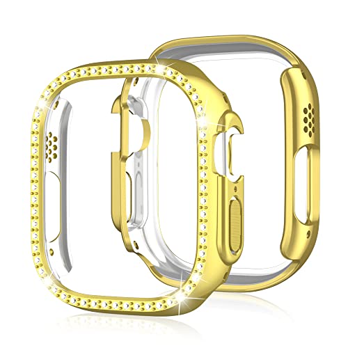 Yrzper - Yrzper Compatible with Apple Watch Ultra 2 /Apple Watch Ultra 49mm Bling Diamond Case PC Bumper Protective Cases Women Girls Crystal Shining Rhinestone Cases Smartwatch Accessories Case (Gold)