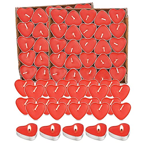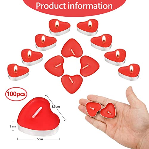 Ysislybin - 100 pieces candle sets, red heart-shaped tea lights, romantic smokeless candles for table decoration, wedding, Valentine's Day, proposal, anniversary, birthday and Christmas