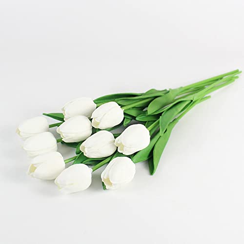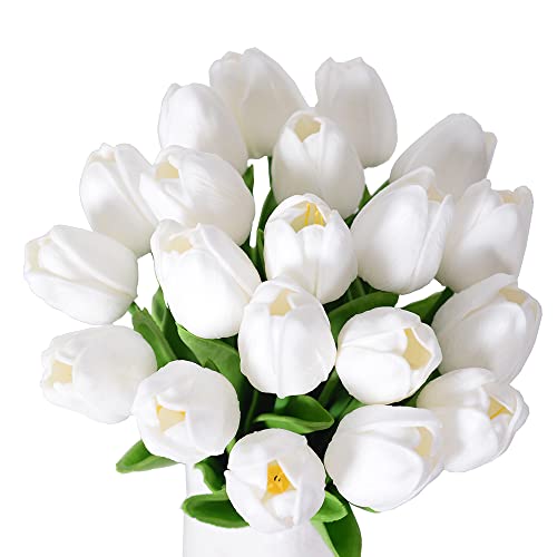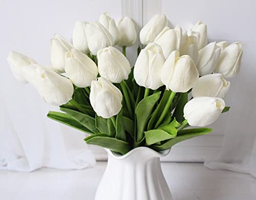YSTP - Pack of 20 Tulips Artificial Like Real Touch Artificial Flowers Tulips Artificial Flowers for Home Outdoor Wedding Bridal Bouquet Decor (White)