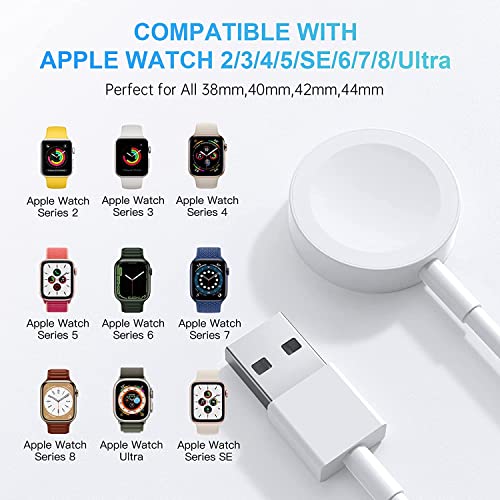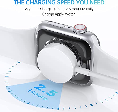 YU WELL - شاحن سريع مغناطيسي للساعة متوافق مع ساعة آبل سلسلة 7/6/5/4/3/2/SE، شاحن سريع مغناطيسي لاسلكي عالي السرعة من يو ويل (USB نوع A، 1 م، أبيض)