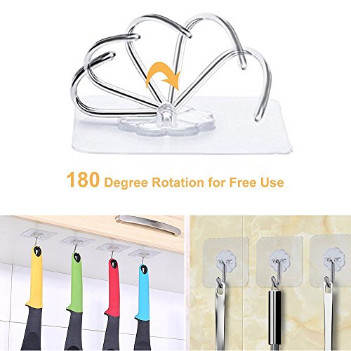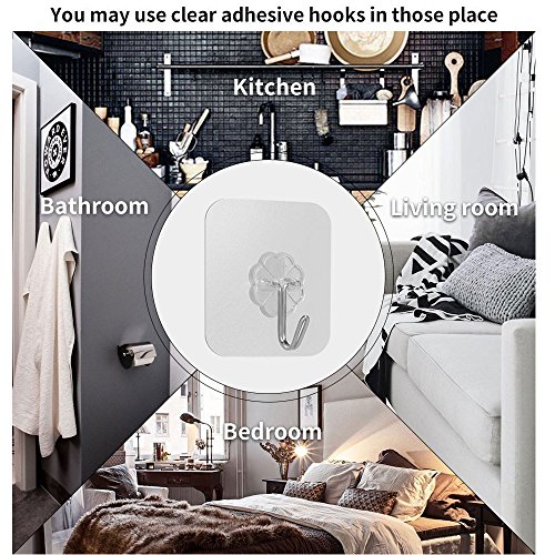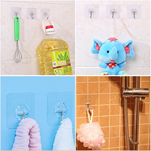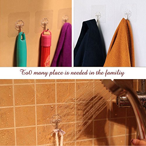 YUANQIAN - YUANQIAN [40-Pack] Transparent Wall Hooks, Heavy Duty 13.2lb/6kg Nail Free Non-Trace Reusable Adhesive Powerful Hook,Waterproof,Oilproof Sticky Glue for Kitchen,Bedroom Wall Duty Wall Hook (40)