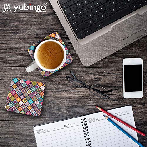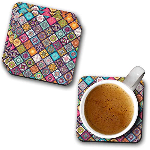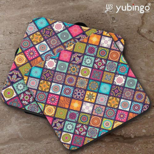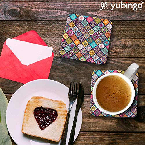 YuBingo - YuBingo Beautiful Mandala Pattern Designer Printed Coasters (MDF Wooden, Set of 6, 9.5x9.5 Cm, Square)