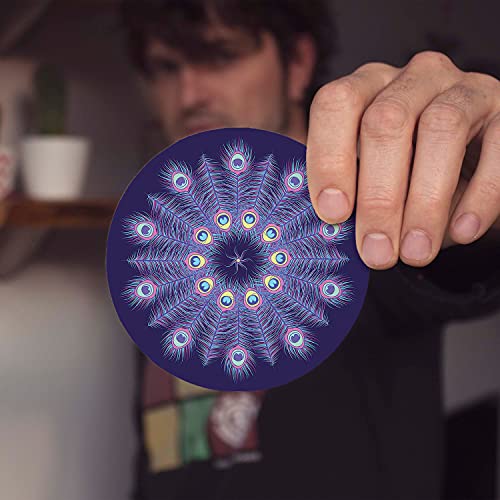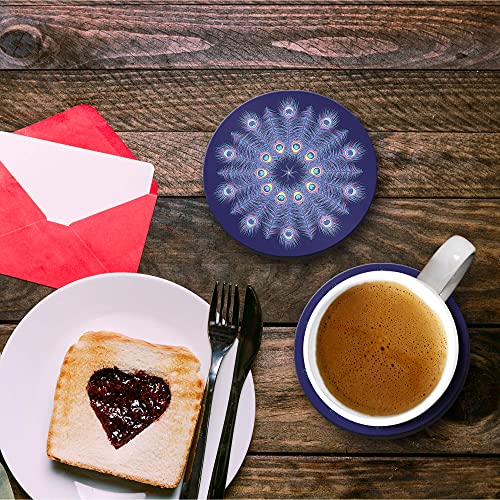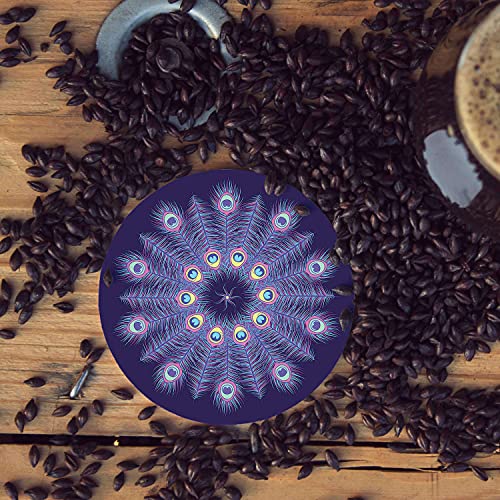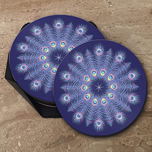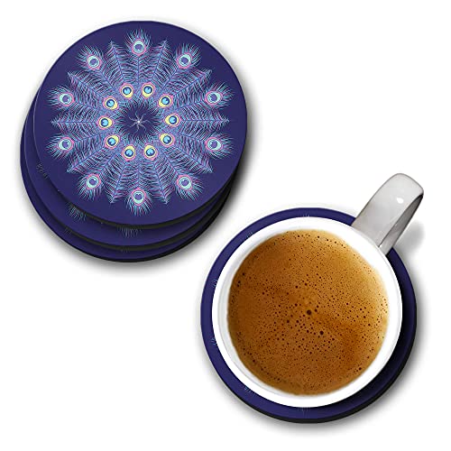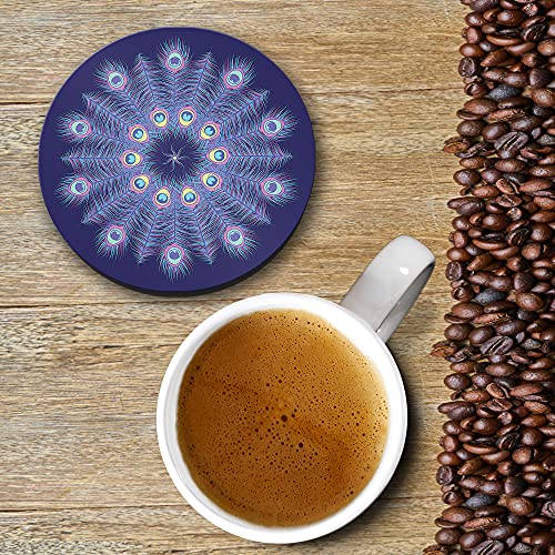 YuBingo - YuBingo Coasters for Dinner Table - Peacock Feather Mandala (MDF, Set of 4, 9.5x9.5 Cm, Round)