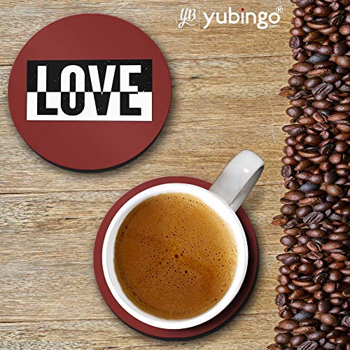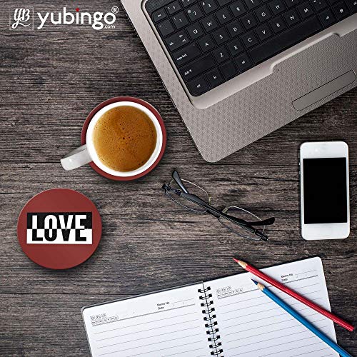 YuBingo - قواعد اكواب مطبوعة بعبارة Love من يوبينجو (خشب ليفي متوسط الكثافة، مجموعة من 6 قطع، قطر 9.5 سم، دائرية)