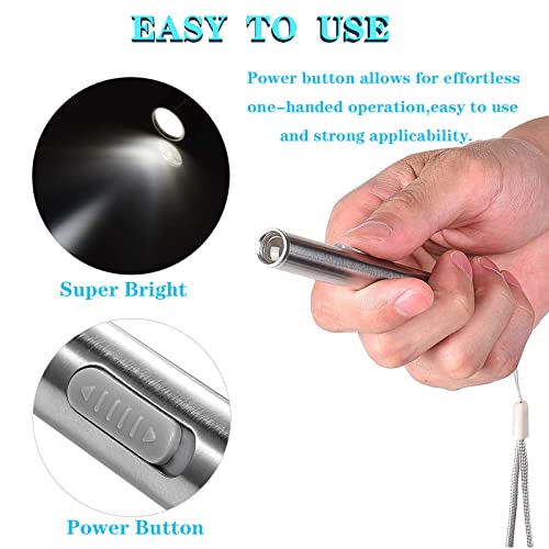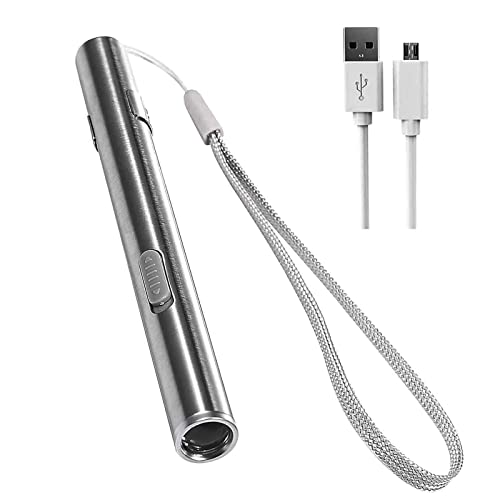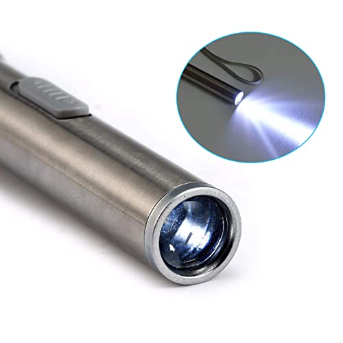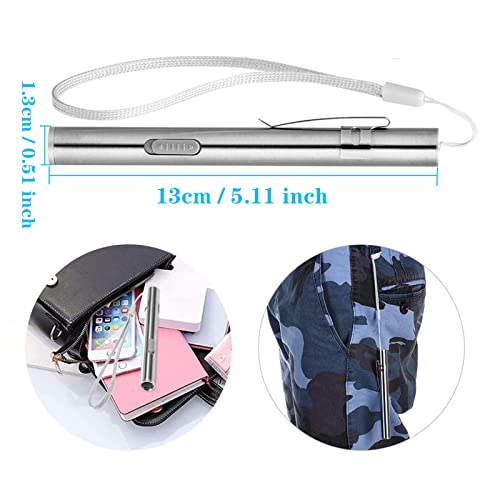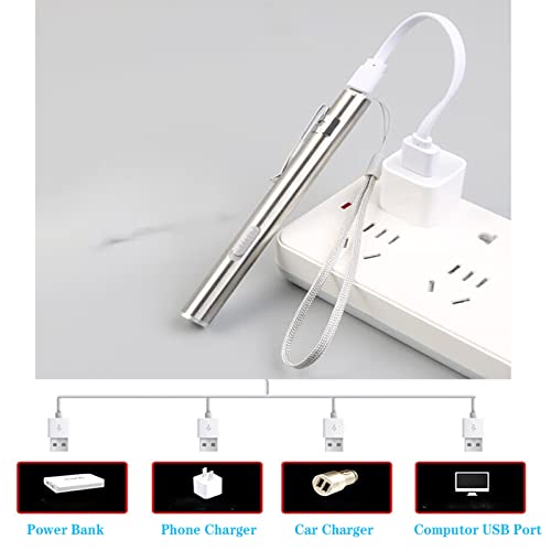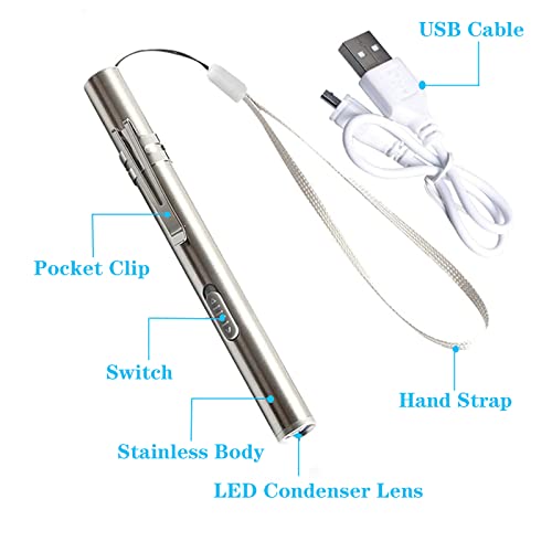 yuentoen - كشاف ليد يدوي قابل لإعادة الشحن، كشاف جيب فائق السطوع من الفولاذ المقاوم للصدأ مع كابل USB، كشاف يدوي عملي صغير للطوارئ والفحص الطبي للمنزل والخارج (فضي)