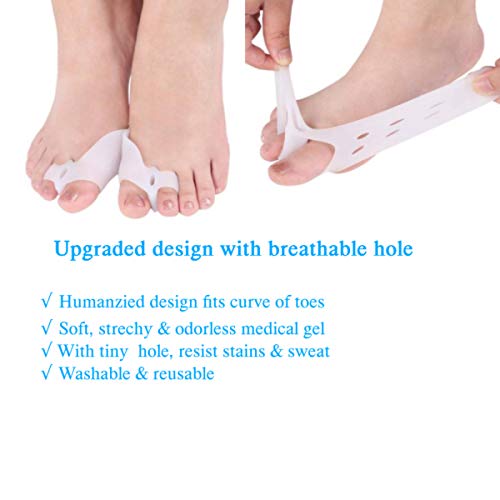 YUESUO - YUESUO Two-Hole Toe Separators, Hallux Valgus Correctors, Big Toe Protectors Bunion Pain Relief Toe Straighteners (2 Pairs) (White)