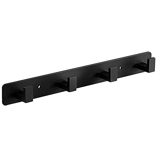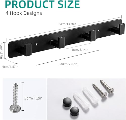 - The wall coat rack with 4 black hooks for hanging coats, clothes, hat, towels, jacket, backpack, robe, entryway, bathrooms, mudroom, etc.