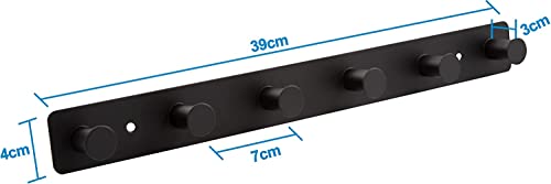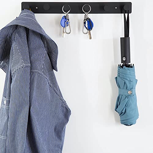 YUET - يويت خطاف لتعليق المعاطف والمناشف يثبت على الحائط الباب او رداء الحمام - حامل شديد التحمل من الستانلس ستيل في غرفة النوم المطبخ للملابس والقبعات 6 خطافات اسود خليط معدني 45.0 رطل 45.0 .