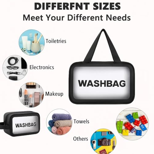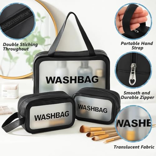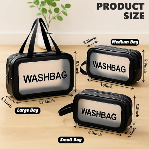 - 【Set of 3 Semi-Transparent Washbags】: Includes one large, one medium and one small pouch—ideal washbags for travelling that meet TSA airport security rules. Frosted PVC fronts conceal personal items while allowing quick inspection, and leak-proof seals keep contents safe.