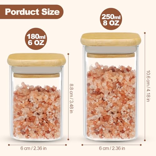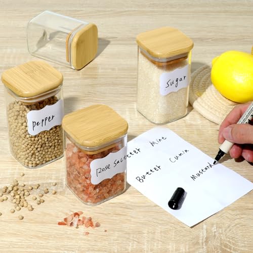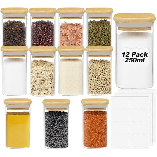 YUEYEE - Glass Spice Jars with Lids and Labels,12 Pack 8oz/250ml Small Square Glass Storage Jars with Lids for Spice,Salt,Seeds,Sugar Coffee Tea Storage Canisters