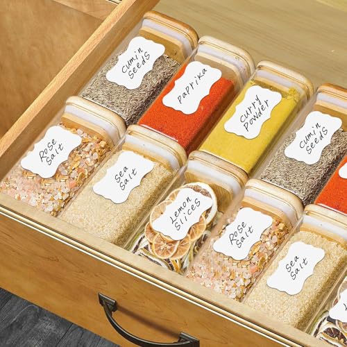 - Clean and Organised Kitchen: This 12 spice jars with lids and labels can store your various spices, ditch the cluttered plastic packaging for our beautiful spice containers and keep your cupboards neat and tidy. The jars can be stacked and arranged to save space. Write the name of each spice on a label for quick access to the spices you need.