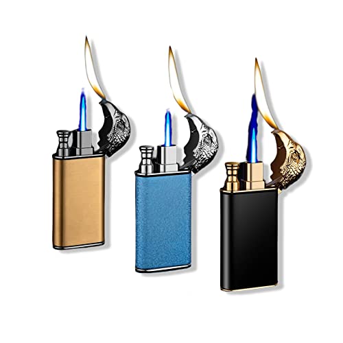 - Unique design : This cool lighter is made of zinc alloy material, with a unique and delicate appearance, no leakage, and durable. Lightweight and slim design is easy to pocket and carry.The magic double flame lighter's head cover of the fuselage adopts Eagle shape and three-dimensional sculpture, which is vivid and vivid. The frosted shell is comfortable to the touch.
