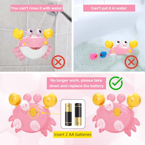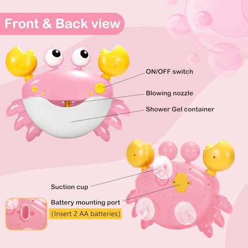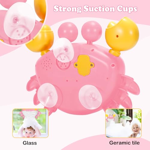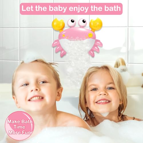 YUISTRE - Baby Bath Toys Crab:Bubble Machine Bath Toy Crab Bath Bubble Maker,Blow Bubbles and Plays Children’s Songs,Bath Toys for Toddlers 1-3,Battery Operated(Pink)