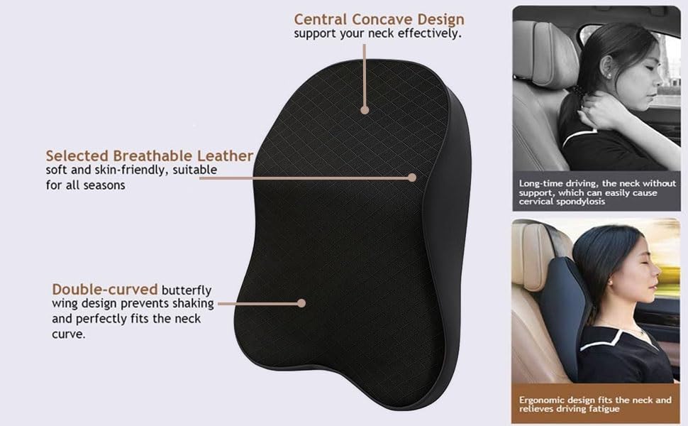 - ERGONOMIC DESIGN : Car neck pillow can effectively relieve neck pain. This memory foam car neck pillow is ergonomic and can provide good support for your cervical spine and head. And provide you with a relaxed, comfortable, and safe driving experience.