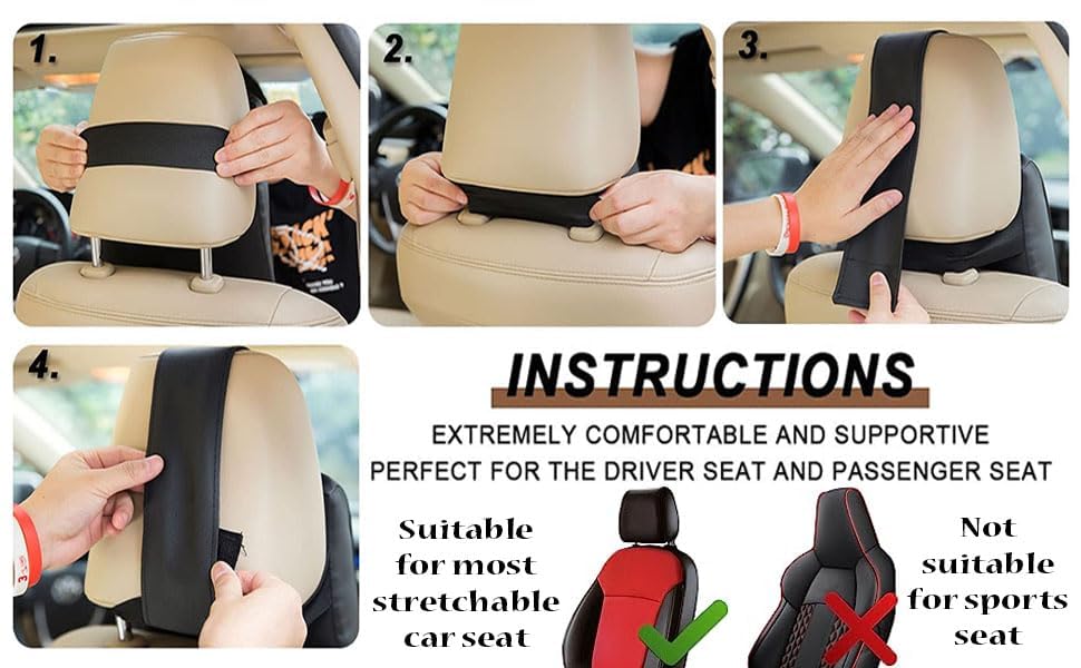 - EASY TO INSTALL & CLEAN : The car neck pillow is easy to install with flexible elastic straps, which can be fixed to a comfortable position. The outer cover can be easily removed and machine washed or hand washed. Note: the foam lining cannot be washed. If it gets dirty, it can be wiped with a damp cloth and dried.