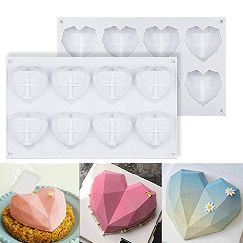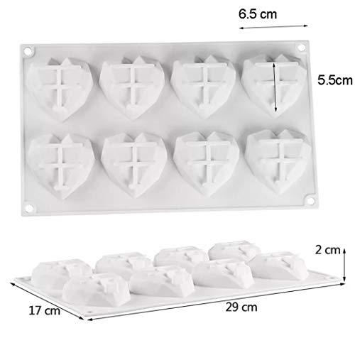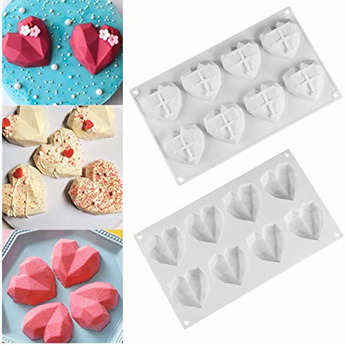 YUL - YUL 8-Cavity 3D Diamond Heart Shape Silicone Cake Mould Cake Chocolate Fondant Soap Candle Molds(2 PACK)