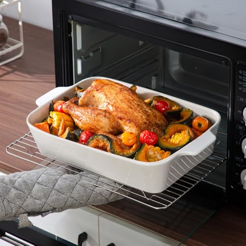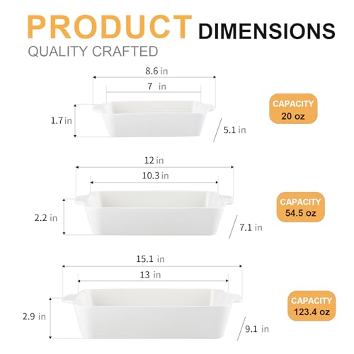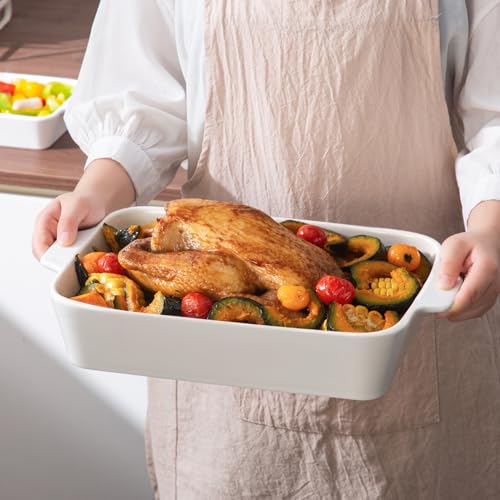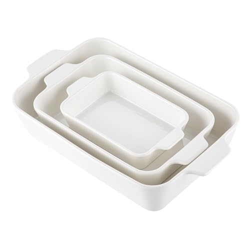 YUN TAO - YUN TAO Casserole Dishes for Oven, Porcelain Baking Dishes, Ceramic Bakeware, Rectangular Lasagna Pans Deep with Handles for Baking Cake Kitchen,Cake Dinner,3-Piece (Set of 3, White) (White, 15.1 Inch