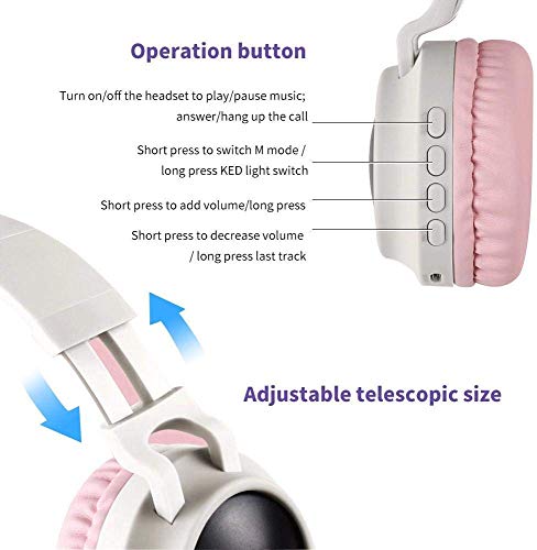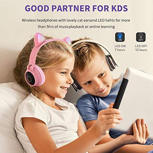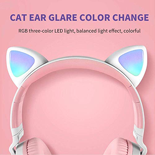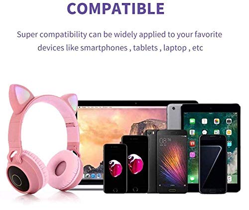 Yunfeng - Bluetooth Headphones,Wireless Headphones,Headphone Over Ear,Kids Headphones,Cat Ear LED Light Up Bluetooth Foldable Headphones (Pink)