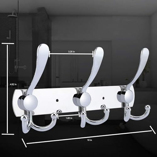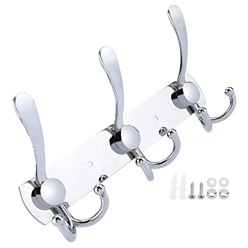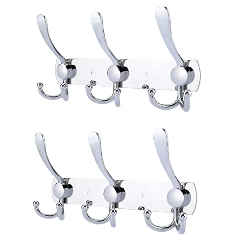 YUNISS - Coat Rack Wall Mounted,3 Tri Stainless Steel Coat Hook for Coat Hat Robes Towel in Mudroom Entryway (Sliver, 2 Pack 3 Hook)