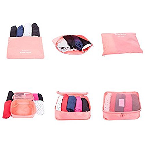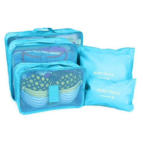 YUNQI - Travel Organisers Essential Bags-in-Bag Travel Storage Waterproof Nylon Drawstring Dry Bag Clothes Suitcase Luggage Storage Bags Set of 6 Big Space Purple, Blue, One size,